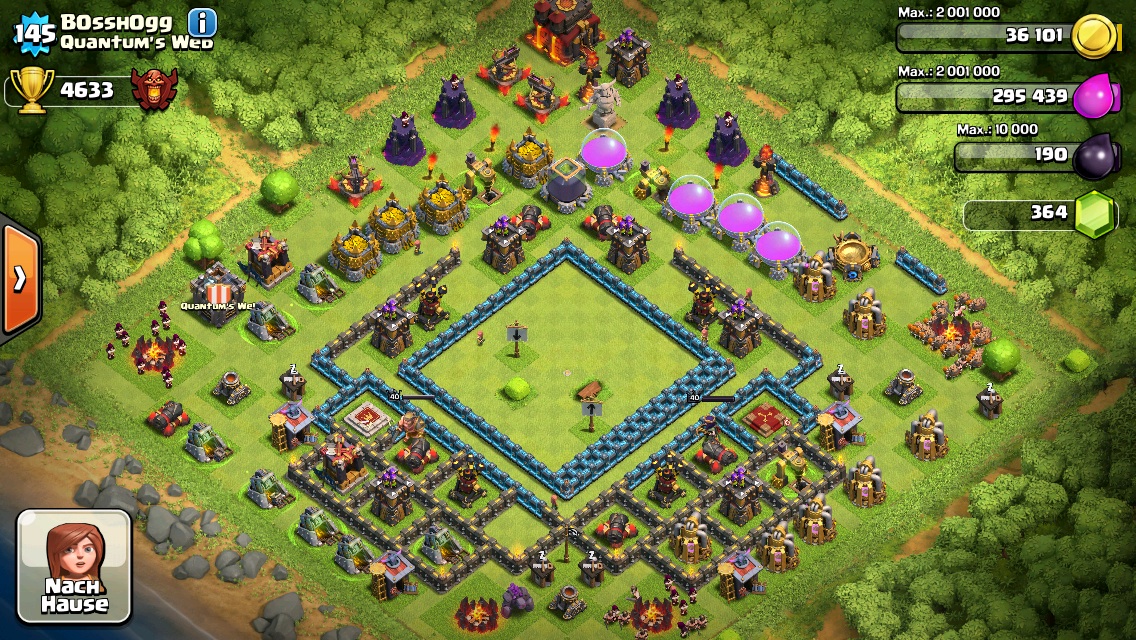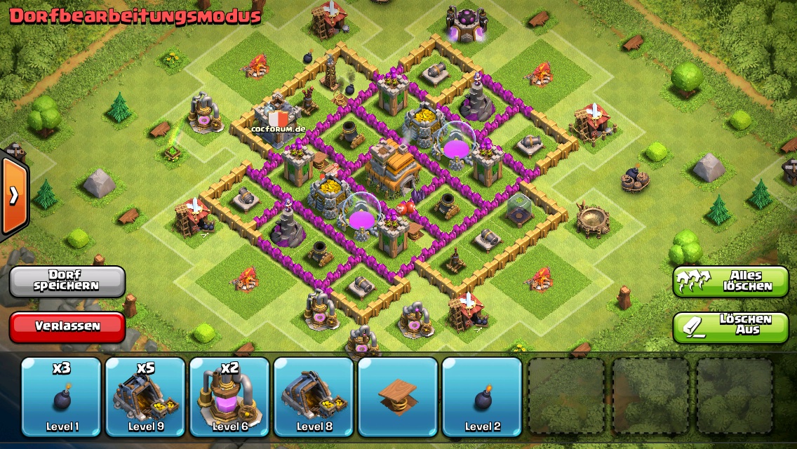 Hier mal ein potentielles neues Layot für mein Dorf. Was haltet ihr davon? Eventuell besser als das alte Layout? Ich denke das die Devensive dadurch gestärkt wird, da die sammler alle draußen sind.