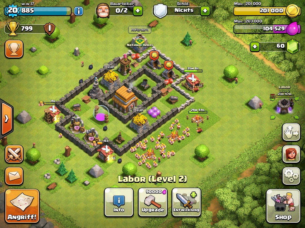 Aktiv spiele ich CoC erst wieder seit ein paar Tagen, wobei mein Account bestimmt schon seit gut einem Jahr besteht. Allerdings hatte ich irgendwann die Interesse an dem Spiel verloren, die ich aber, wie gesagt, vor einigen Tagen wieder gefunden habe