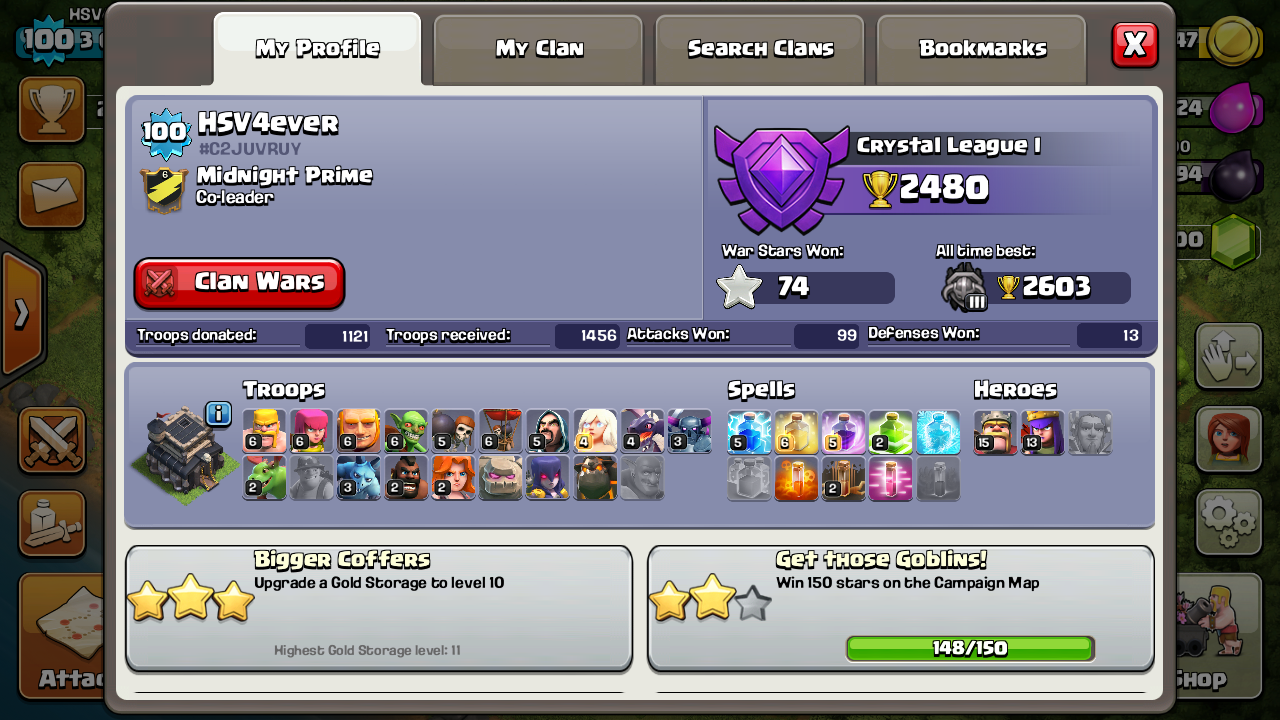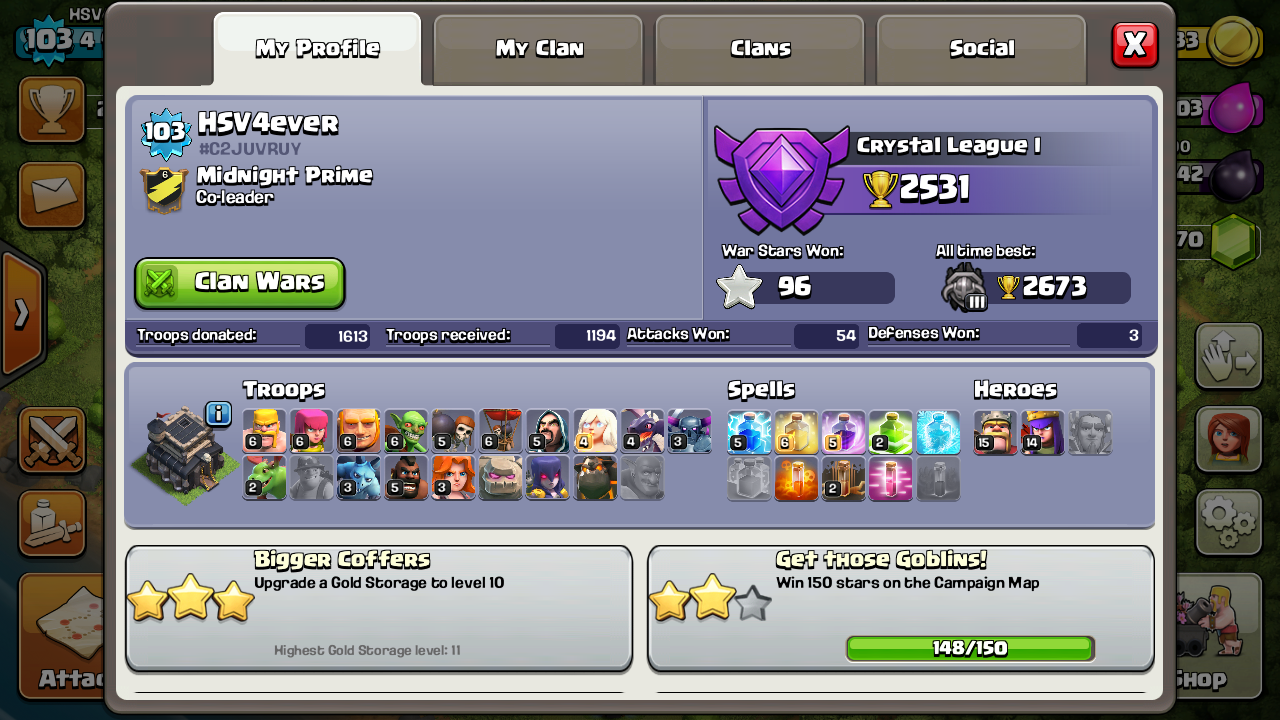 Zu meinen Stats: Seit ich im Clan Midnight Prime bin, hab ich keinen CW mehr mitgemacht, ich glaube, mein letzter CW liegt ein Jahr zurück.