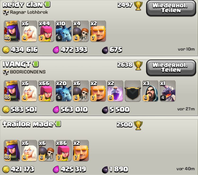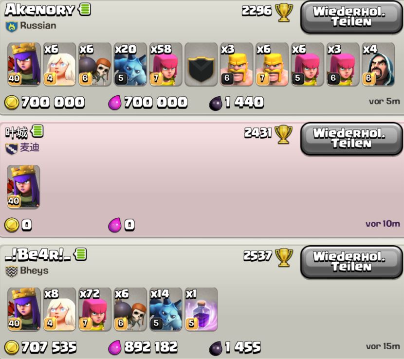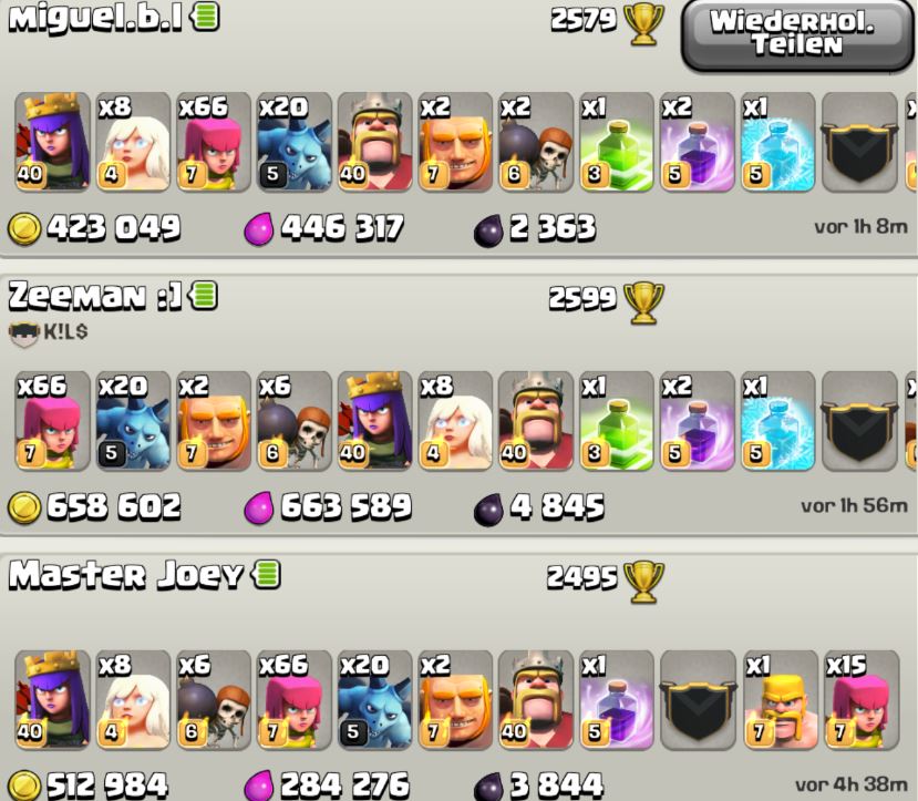 beachte bei dem qw: nicht gleich in den großen block sprengen, sondern eine halbe runde (von 5uhr bis 7uhr) die queen walken lassen. dann bei 5uhr/7uhr sprengen damit die queen weiter nach innen geht.das dorf ist eindeutig etwas zu schwer für deine helden.