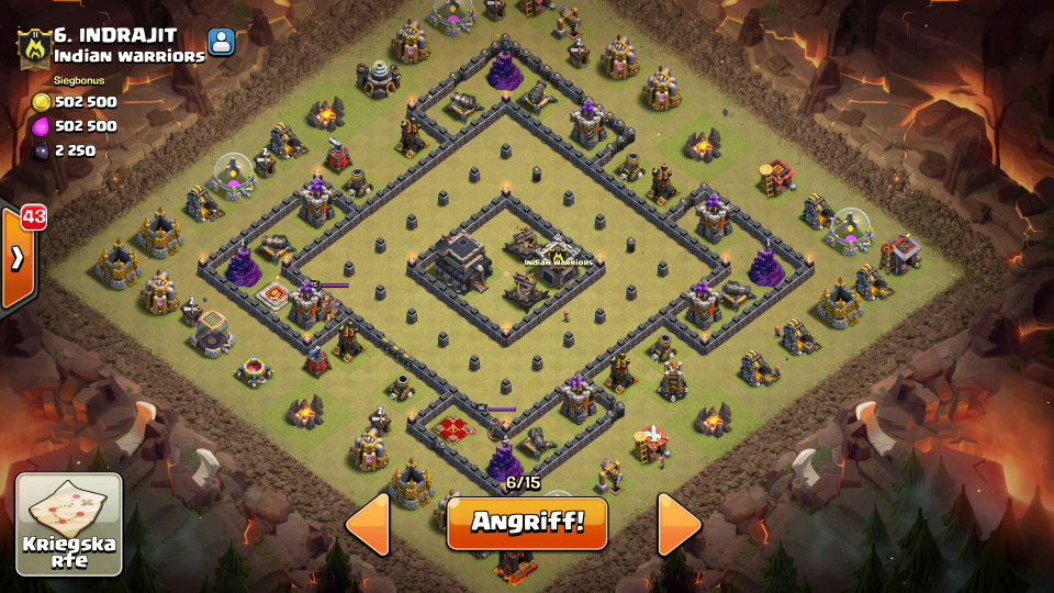 Mit dem KS solltest Du mind. die Gegnerische Queen dessen CB und eine Luftabwehr bekommen. Je mehr desto eher 3 Sterne.
