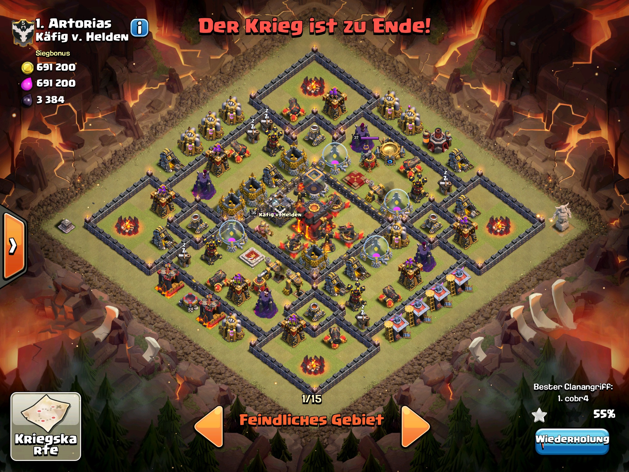 Die gleiche Base, selber CW aber nicht Gemaxed hat es dann auch geklappt.. Aber der Anspruch sollte nunmal sein, auch bei (nahezu) Maxed Leuten eine Poki Base zu plätten.