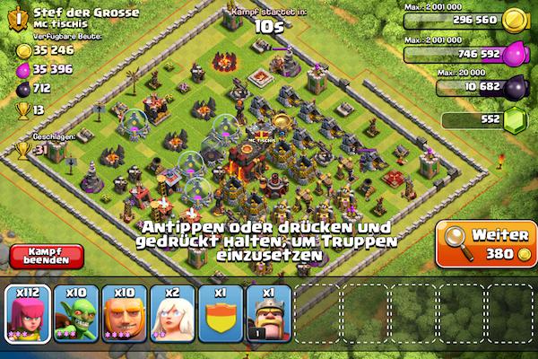 Die Hoffnung bleibt dabei, dass der erste das rathaus und die Ressourcen einsackt anstatt das jemand mit Rache vorbeikommt und man bis zu 55 Pokale verliert.