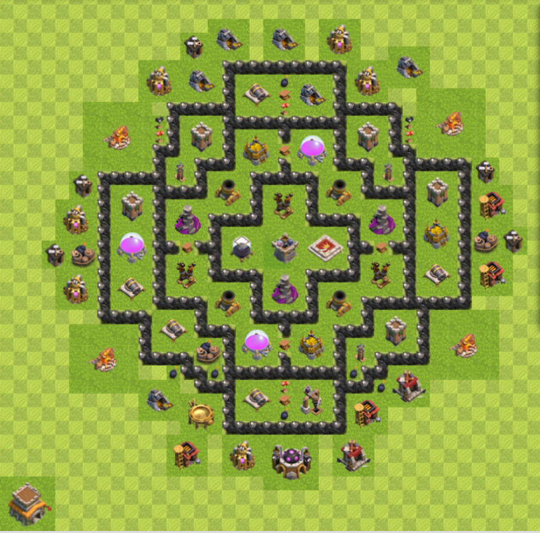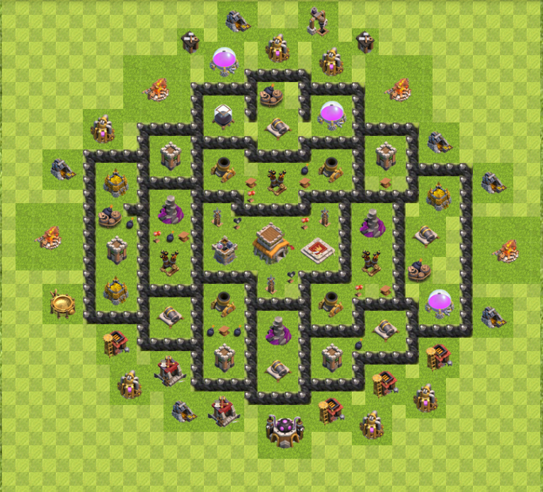 hey, habe hier mal ein CW- bzw. Trophydorf designt, hatte mal wieder langeweile. Die Verteidigung an sich sind relativ symmetrisch angeordnet, auch wenns auf den ersten Blick nicht so ausschaut. Anregungen für Verbesserungen bzw. Veränderungen sind gern erwünscht