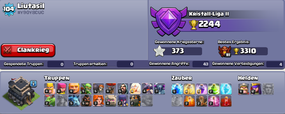 Derweil ist mein Bogiturm auf Level 8, der Tesla auf 3, die Luftabwehr auf 4 sowie mein Magierturm und Luftfeger auf Level 2.