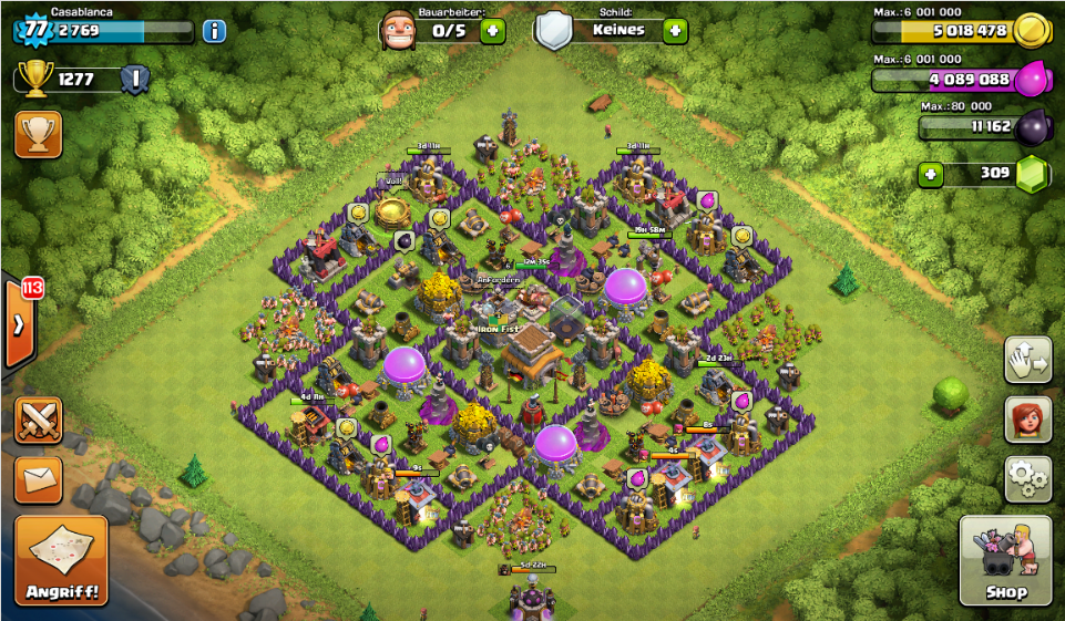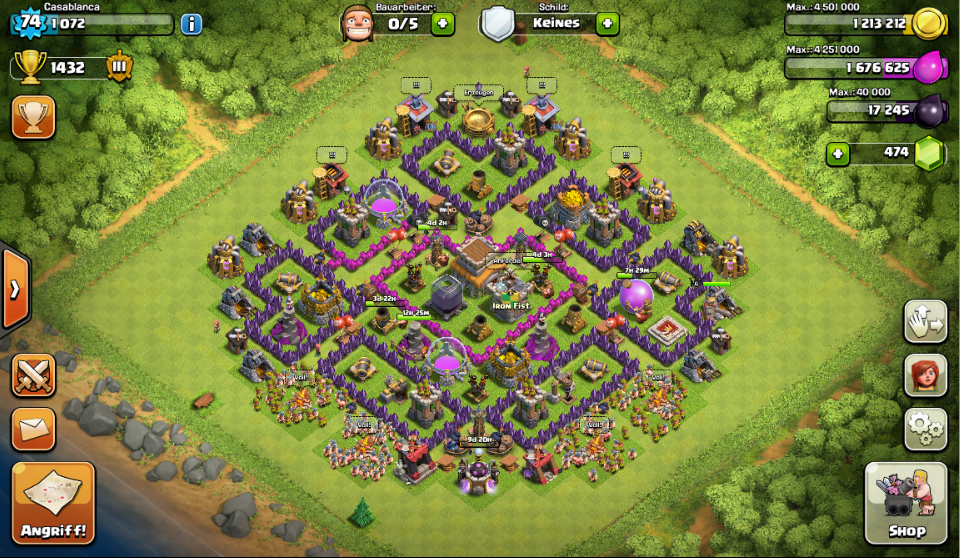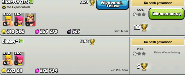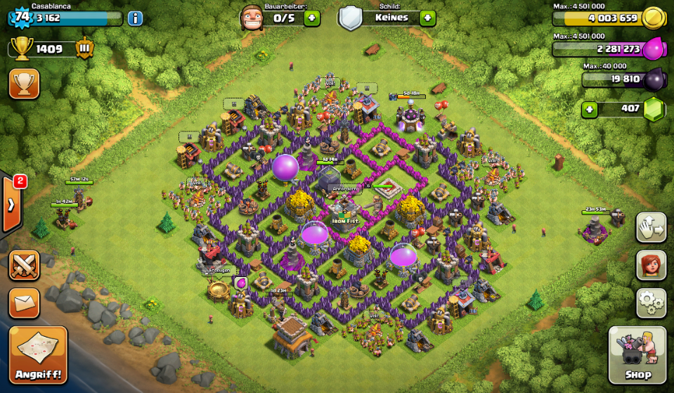. Außerdem habe ich einige Goldminen und einige Sammler auf 12 gebracht und die zweite Dunkle Kaserne auf 2 gebracht. Auch die letzten 6er Mauern sind endlich auf 7, allesamt.