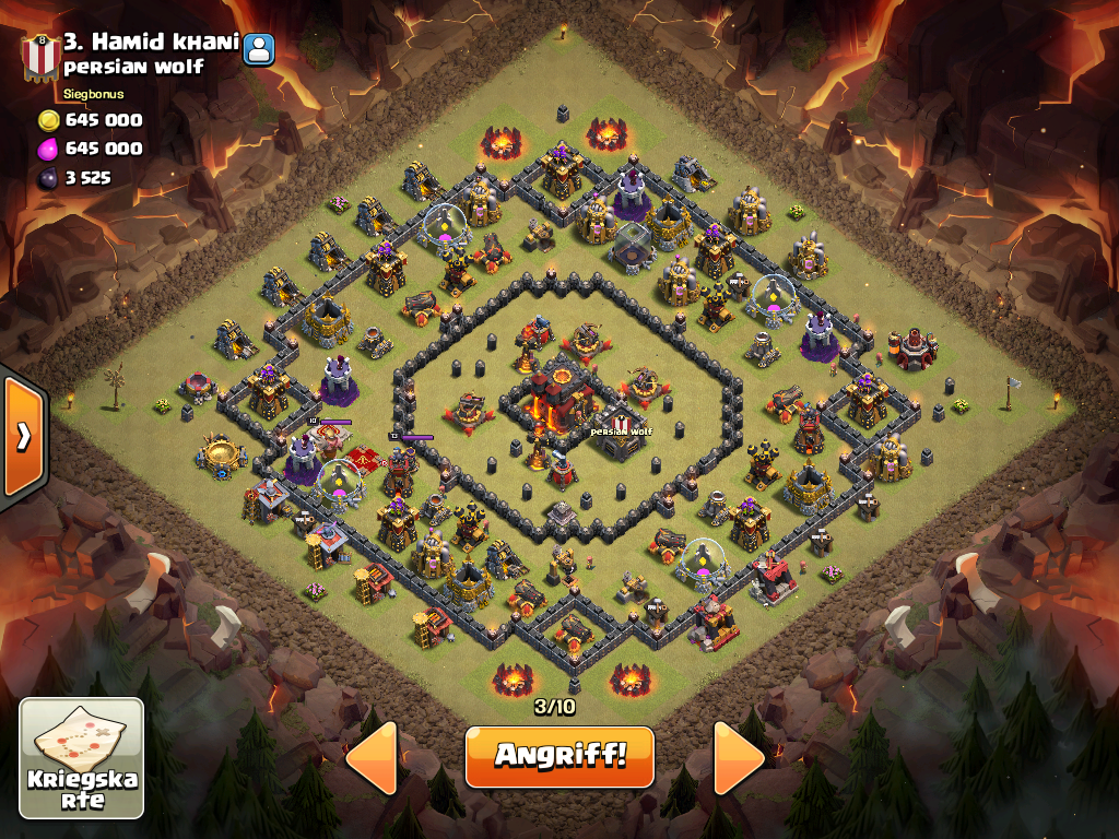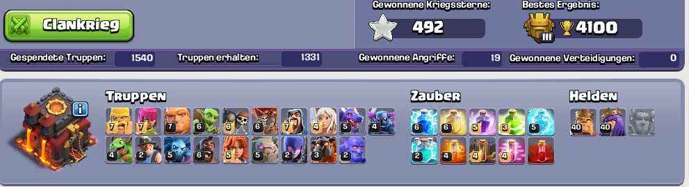 Mein erster Gedanke wäre mit eineuen Queenwalk auf 12 zu starten in der Hoffnung das die Lady in Richtung 9 läunter. Mit Golem und Valks auf 7 über die Mauer um so 2 LA, die Queen und die CB ausschalten. Dann einen Loon Angriff von 2 bis 4 starten. Hier fangen dann aber meine Probleme an, Queenwalk war noch nie meine Stärke und Loons beherrsche ich auch nicht. Mir fällt aber auch nichts sinnvolles ein wie ich Bodentruppen in die Mitte bekomme.
