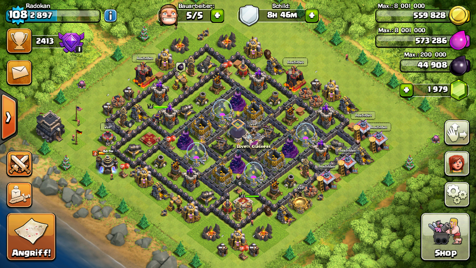 Gebäude sind alle max out, aber im Labor fehlt noch einiges und dann Mauern Mauern Mauern