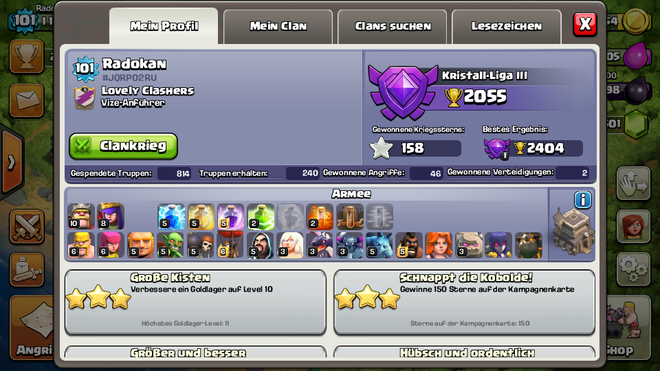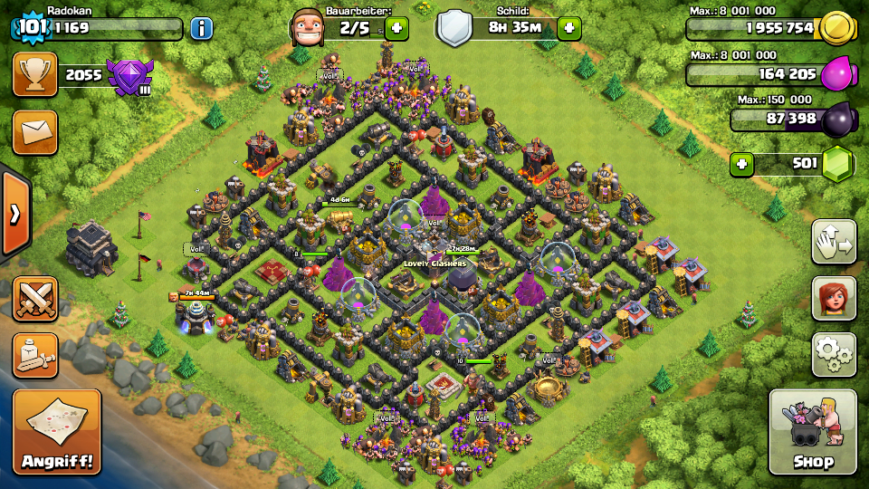 Bis auf die dunkle Zauberfabrik sind alle möglichen Gebäude mit Elex gelevelt, jetzt bleibt nur noch die Deff und Mauern.