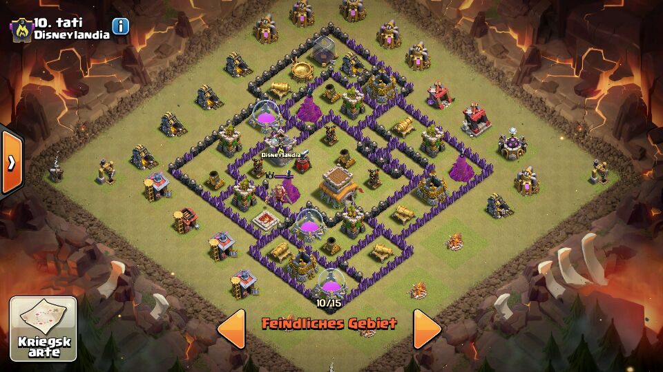 Eine sehr gute Base. Vielleicht könntest du das Rathaus mit der Queen tauschen, aber die Entscheidung liegt bei dir. Vor allem Anti-Gohog, da man ja nicht weiß, wo die Fallen sind.. Einer der die Taktik Golaloon beherrscht, könnte die Base eventuell mit 3 Sternen versehen, aus dem Grund, weil man unten, wenn man sie gut setzt (Golem und Magier + Helden), 2 Luftabwehre den X-Bogen und vielleicht sogar die Queen ausschalten. ![]()