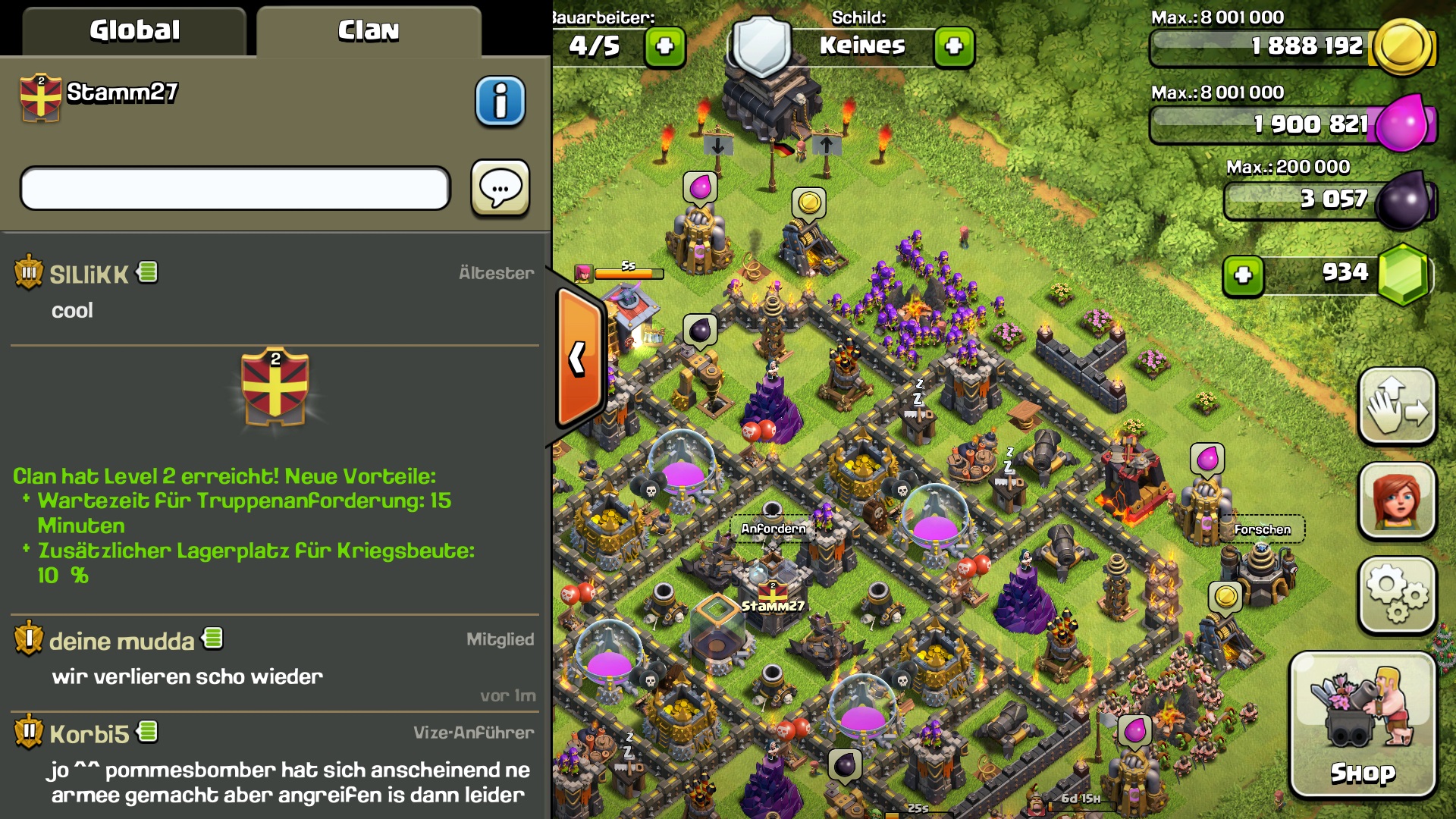 Hatte gestern Abend nur schnell zum testen meine Pokalbase aktiviert... Hab 2 Verteidigungen gegen Max Truppen gewonnen (inklusive 40er Königin).