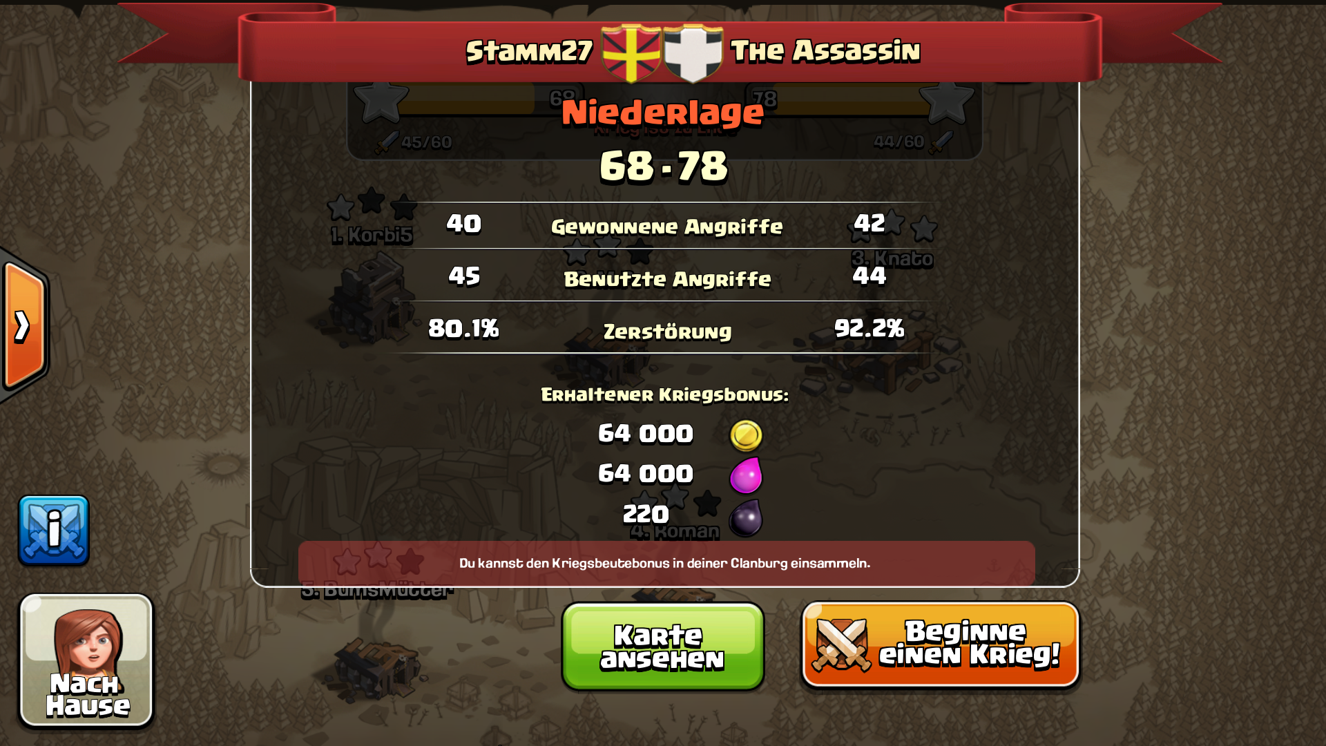 @Lutz Hoffentlich finden wir euren clan nicht mal bei der Kriegssuche (was zum Glück ziemlich unwahrscheinlich ist). Da würden wir ja sowas von verlieren