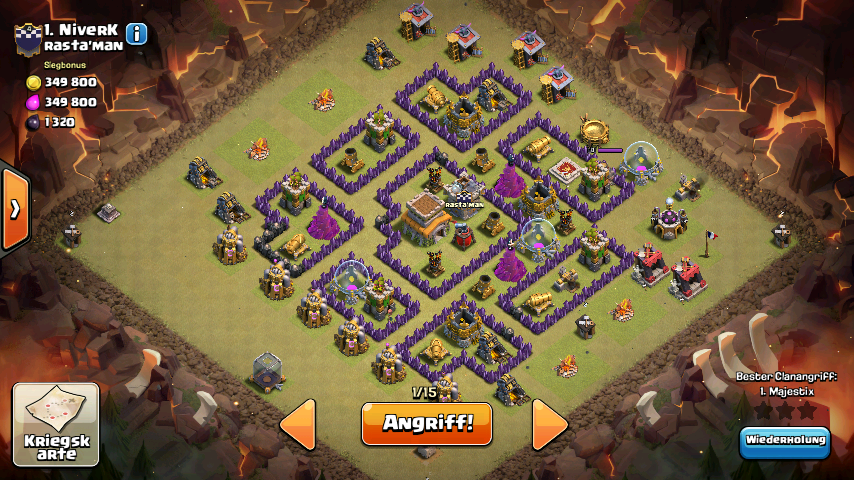 Ich möchte diesen Gegner angreifen hab lvl3 Drachen und Wut Heil Blitz lvl4.. Meine Idee wäre mit Wut und Heil angreifen.. Hat wer eine Alternative Idee? Habe aber kein gowipe zur Verfügung. Wären mass Riesen und Magier gemischt mit MB und King 5 eine Möglichkeit? Bitte um Ideen CK dauert noch bis 21:00uhr. Danke