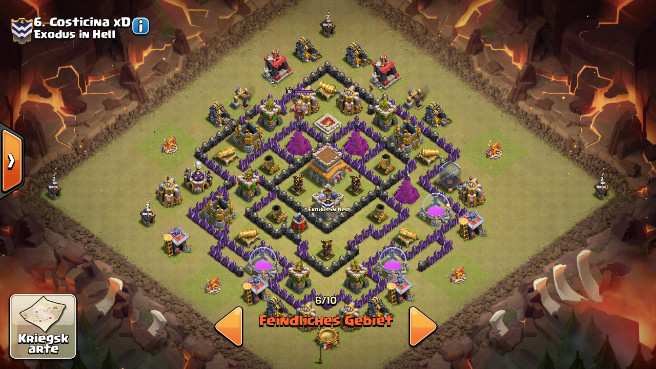 Hab (relativ) viel Erfahrung mit Drachen und GoWiPe Angriffen, würde aber gerne mal eure Einschätzung zu folgendem Gegner hören, da mir das mit Drachen aufgrund der sehr gut verteilten und geschützten LA nicht so passt, und GoWiPe Probleme mit den vielen einzelnen Mauerbereiche bekommen könnte.