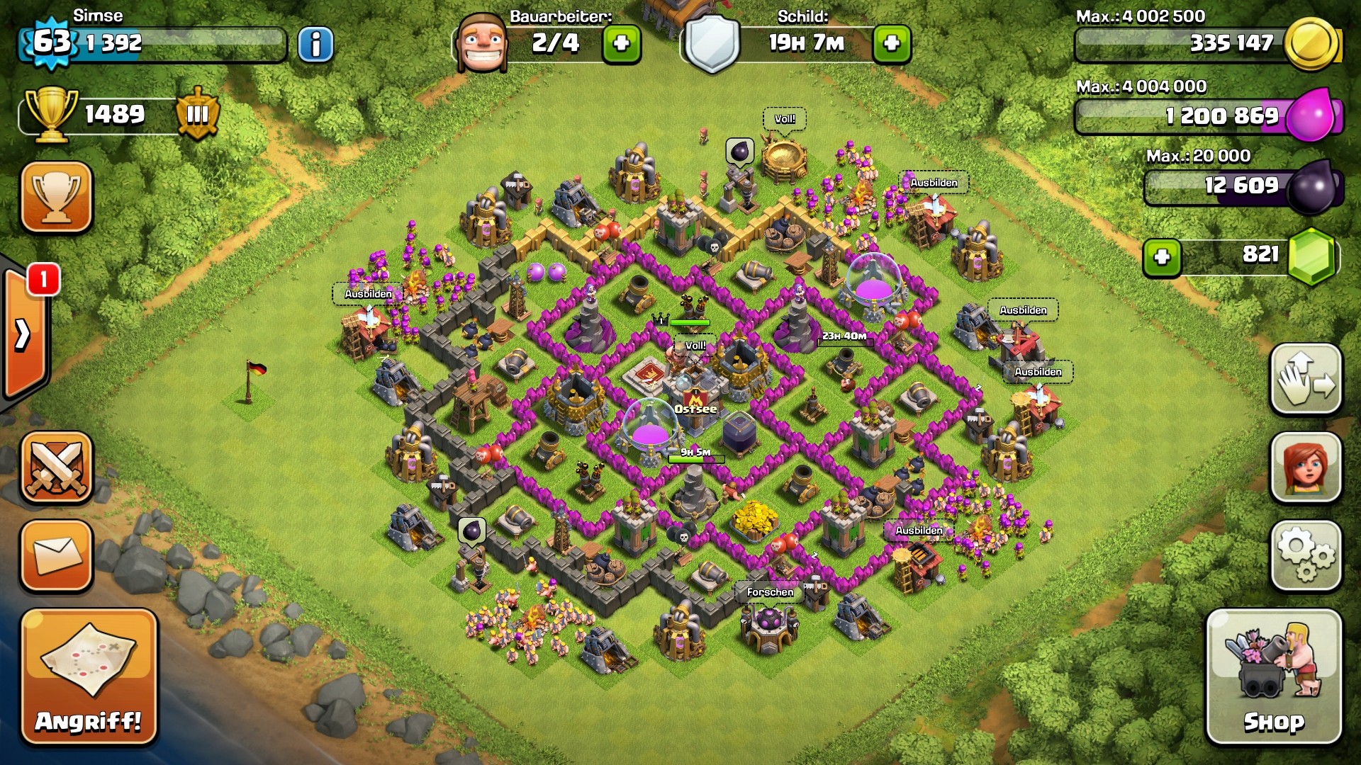 Hallo Leute, bin neu hier im Forum und habe diese tolle Möglichkeit gesehen seine Base zu zeigen. Ich schaue zwar morgens und abends mal nach meiner Base, bin aber kein Hardcore-Spieler.