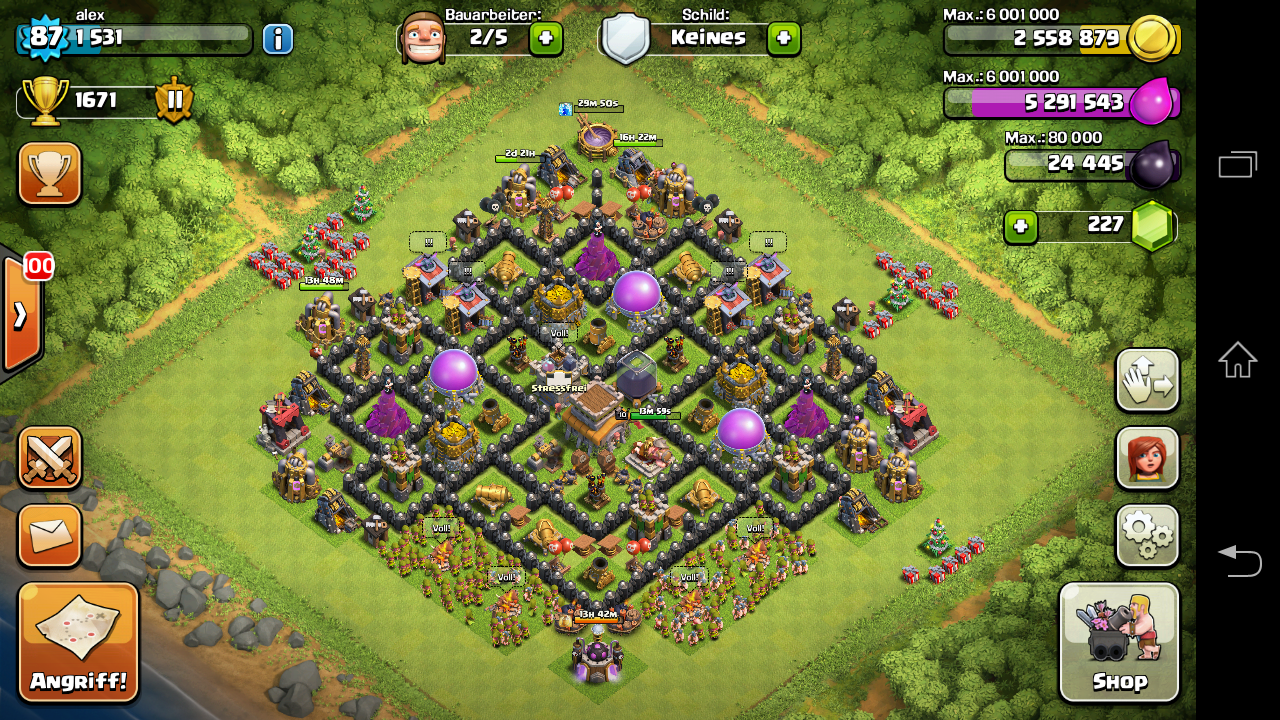 Servus, da hast einen Screenshot von dem Layout das ich bei rh8 genutzt hab. Ist ein Hybriddorf und wurde nur von rh9 und 10 geplättet. Quelle ist clashofclansbuilder.com