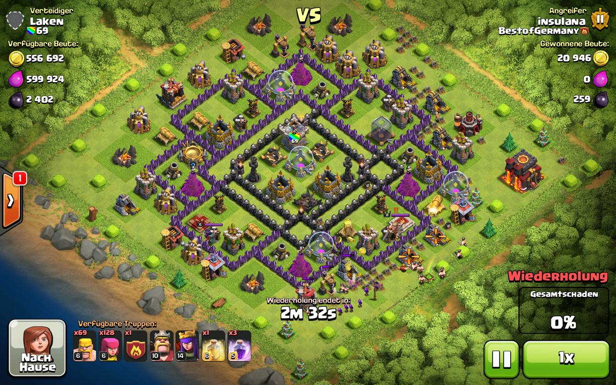 wie ist eigentlich der Stand der Dinge bei dir? Ich bin noch auf RH9 und habe beschlossen erst alle DE Truppen auf max zu bringen. Habe zur Zeit 93 Mauern auf lvl10.Mein aktuelles Dorf.