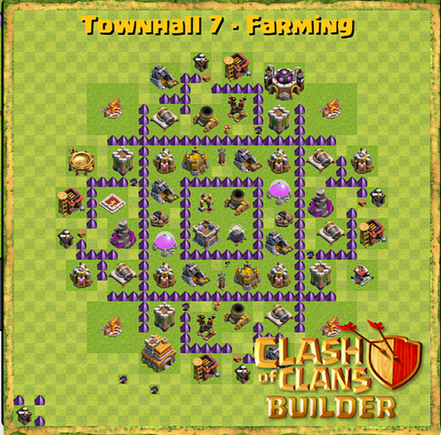 Die Verteidigungen sind so gelegt, dass Riesen einmal um die komplette Base müssen, um alle Verteidugungen zu zerstöten, was extrem zeitaufwendig ist. Wenn mann genauer hinsieht, erkennt man, dass ich meine Minenwerfer und Magiertürme, geschützt von 3 anderen Gabäuden, vor meinen Lagern platziert habe, was den Grund hat, dass man viele Truppen benötigt, wenn man an ein Lager kommen möchte, sofern man mit BArch angreift. So sind also meine Lager, sowie meine Minenwerfer/ Magiertürme recht gut geschützt.