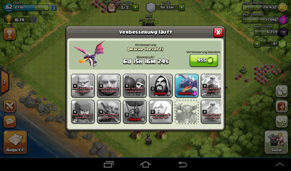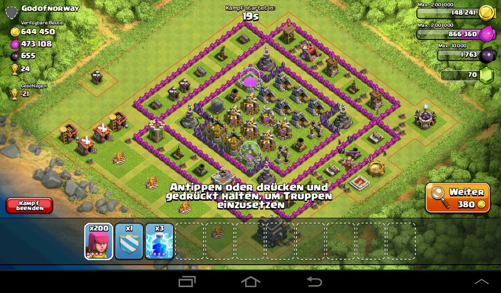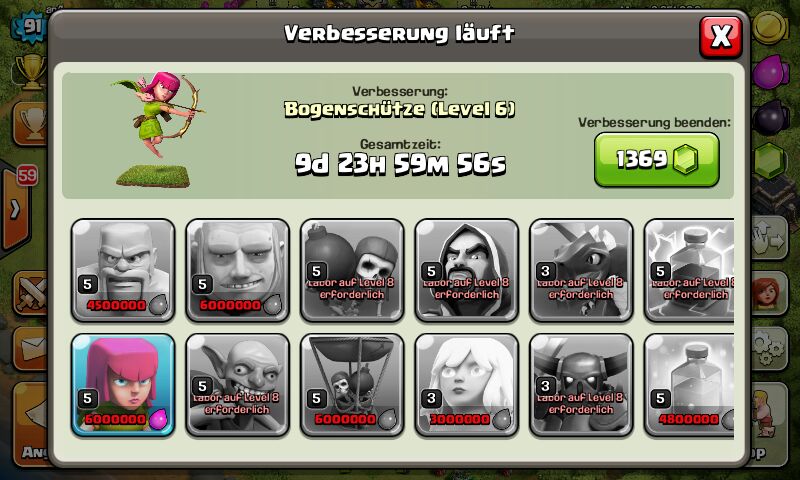 Sobald meine X-Bows aber fertig sind muss ich mir schnell eine suchen.. (Falls jemand eine gute RH9 Base hat, wo die Helden, Clanburg, X-Bows und Dunkles Lager in der Mitte sind, wäre es nett wenn mir ein Screenshot per PN geschickt werden könnte!