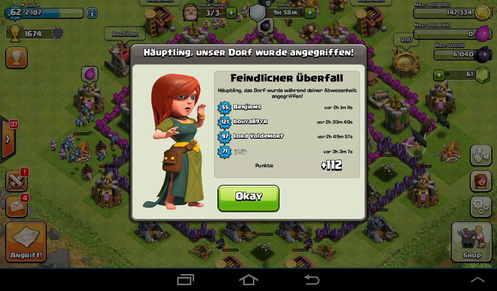 7x Pokis gedroppt, der letze Angriff hat auch keinen Stern geschafft, er hat nur über 40% geschafft, somit hatte ich dann ein Schild.