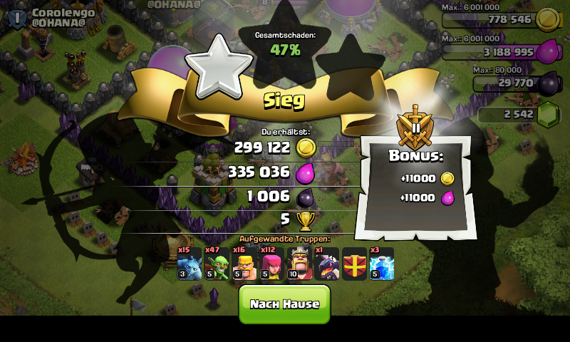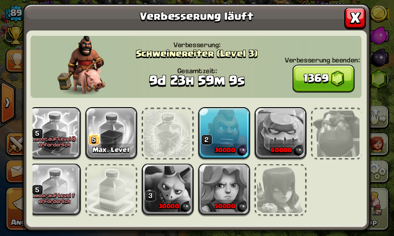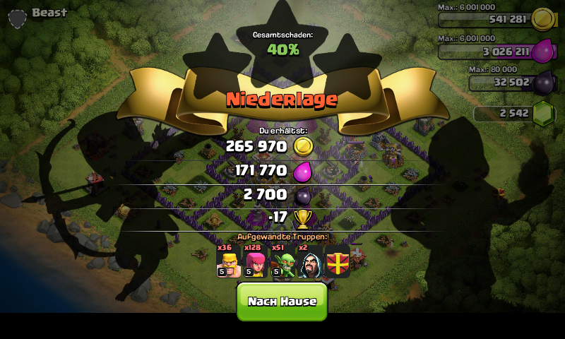 Stell aber am besten dein Rathaus raus und geh auf Ressourcen, farmen lohnt sich hier mehr.