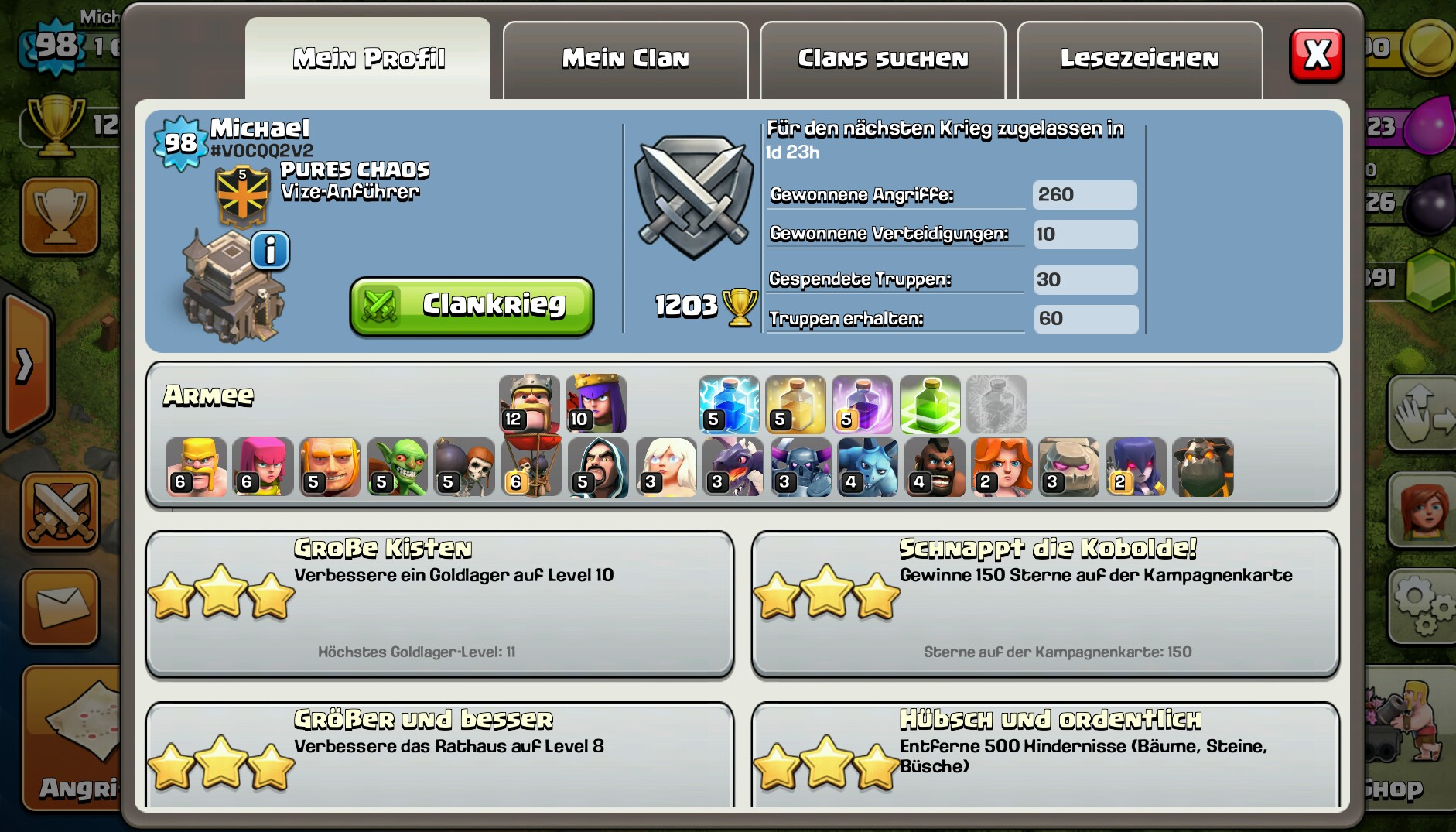 danke ich weiß der luftfeger muss noch irgendwie mit rein und meine deff ist noch auf rh 8 Niveau, aber ich hab erstmal meine truppen gelevelt.