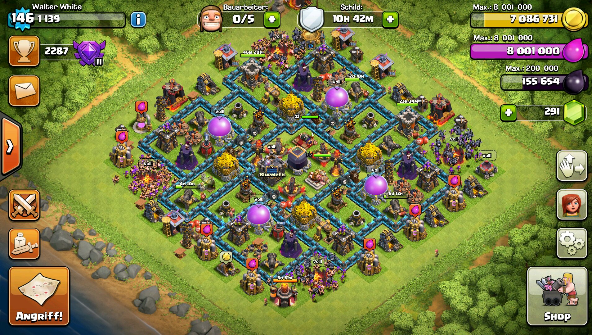Nutze diese Base nur, wenn meine Minen/Sammler voll sind.Hab noch diese Base. Hier ist jedes Lager in einen eigenen Mauernsegment ✔