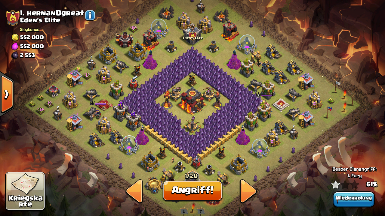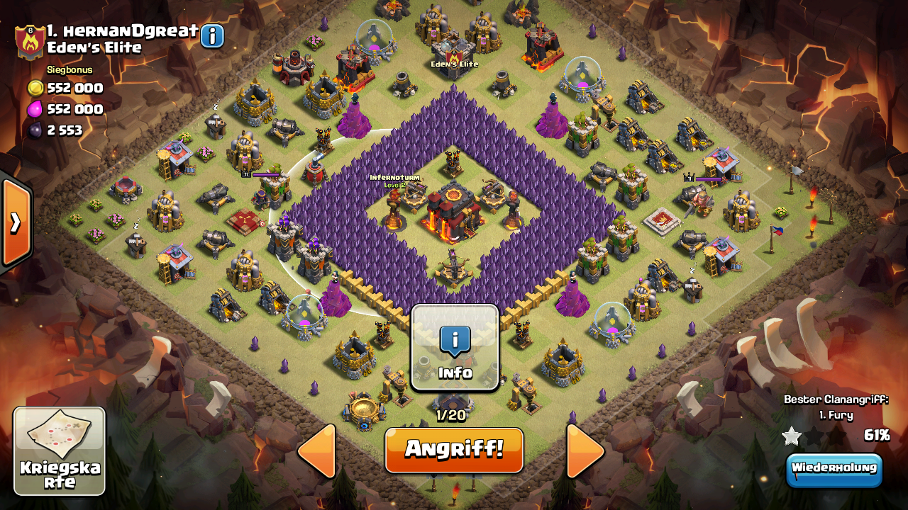 Da der jetzige clankrieg vorrausichtlich sehr schwierig wird, bräuchte ich mal ein paar Tipps, um diesen Gegner zu dreisternen. Wäre alles kein problem, wenn ich meinen king zur Verfügung hätte.... Wenn ihr meint, 3 sterne gehen hier nicht ohne king, dann werde ich wohl einen höheren auf 2 machen.