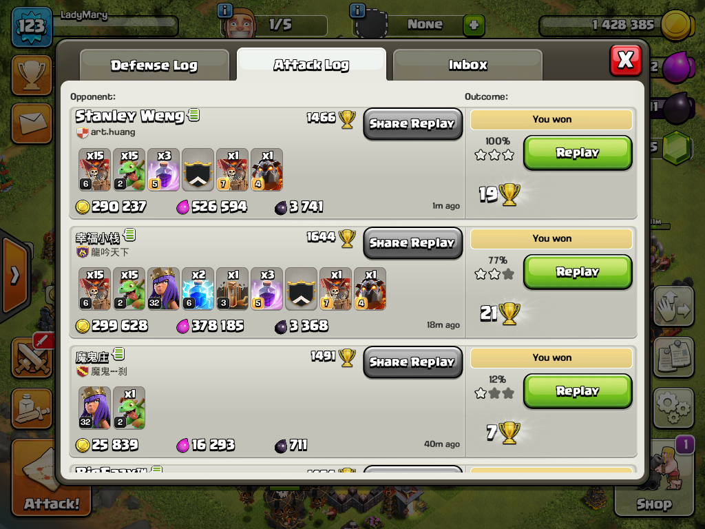 Ging bisher mit Queenwalk auch ganz okay, aber Infernos und Queenwalk ist halt doch knifflig. Die Th 11er mit Lvl 10 Türmen haben ja natürlich 3er oder 4er Infis