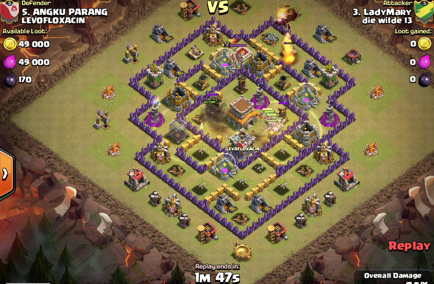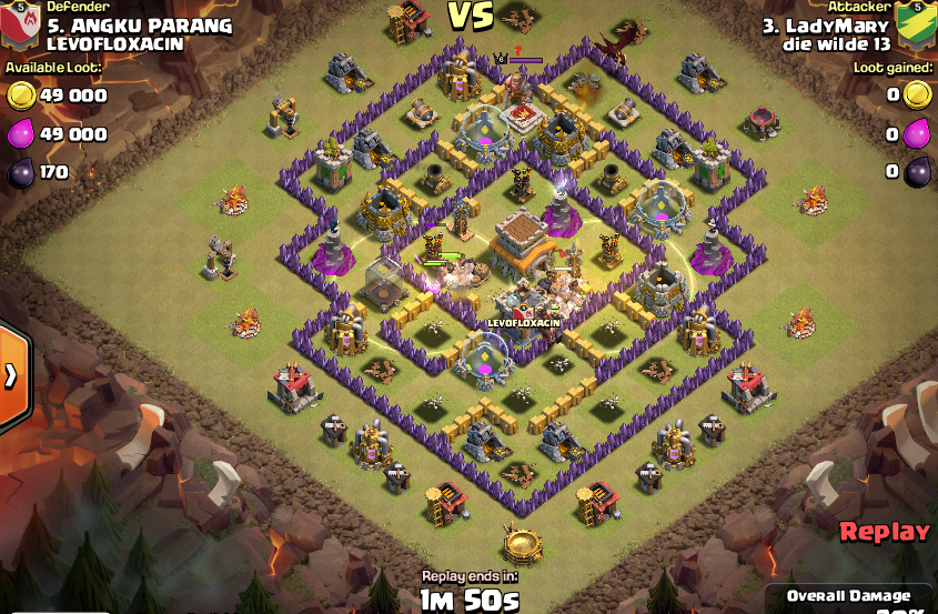 Es hat bisher kein Rathaus 8er geschafft das Dorf zu 3 Sternen- bei einigen hat es mit einem richtig gut gespieltem GoWiPe die 90% Marke erreicht, aber da war ich weit entfernt von Lvl 10 Türmen ![]()