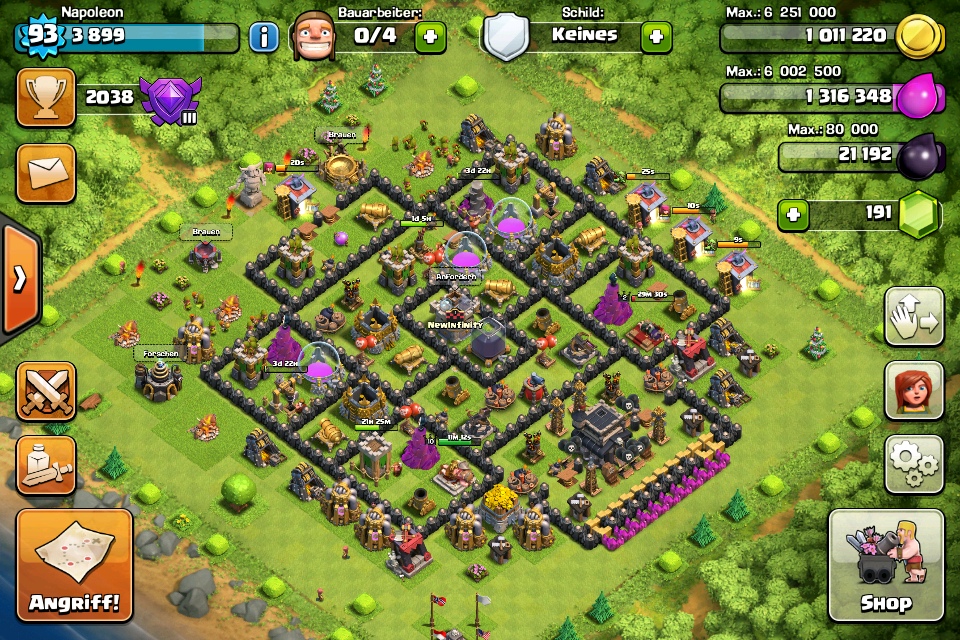 Mit dem Elex habe ich einerseits die Dunkle Kaserne auf 5 gebracht, und die Ballons auf lvl 6 im Labor gestartet.