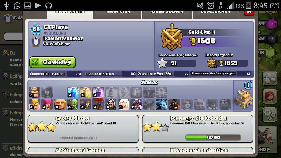 Mit dem Gold werde ich alles Aufbauen. Aber erst sammle ich noch die 100 CW sterne.So dass war es für heute muss nämlich bald schlafen gehen (Morgen Schule)