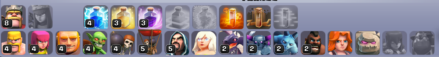 Mittlerweile habe ich meine Truppen schon ein wenig weiter ausgebaut und habe jetzt Pekka lvl 2 und Golems lvl 1 sowie magier auf lvl 5