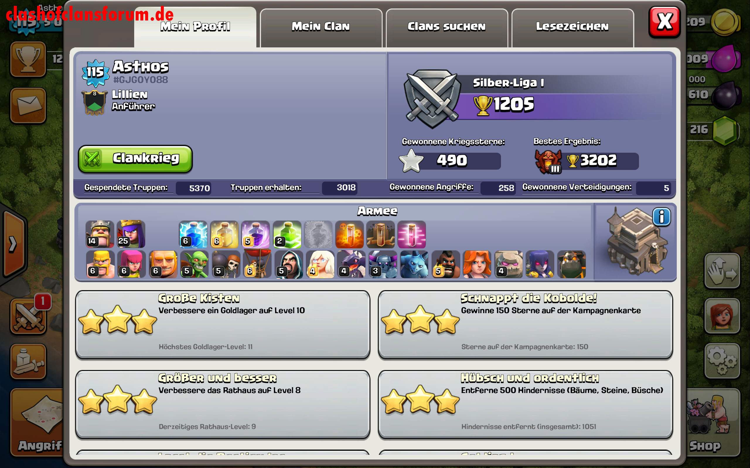 Nach ungefähr 1 Jahr in der COC Welt (davon 8 Monate sehr aktiv) trau ich mal ein paar Screens von meinem Acc zu veröffentichen: