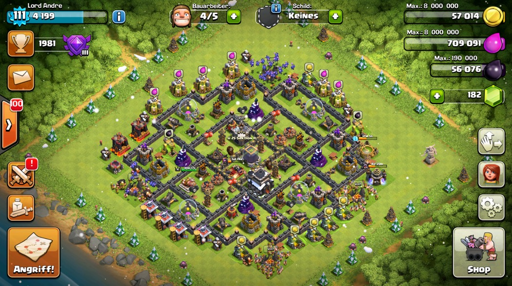 Bin mittlerweile von den Gebäuden maxed, alle 9er Mauern fertig.