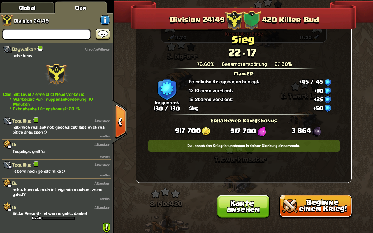 Ich bin von clan Division 24149 , muß gleich mein ck Angriff machen!