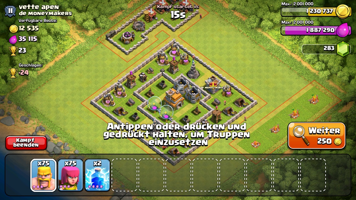 Wusste nur nicht genau welche Verteidigungsanlagen zuerst! Also besser erstmal Magiertürme und Minenwerfer maxen und dann nach und nach den Rest?Hab jetzt den Laborausbau angestoßen und der zweite Minenwerfer ist fast Level 2. Als nächstes kommt dann der nächste Magierturm auf den 2ten Level.