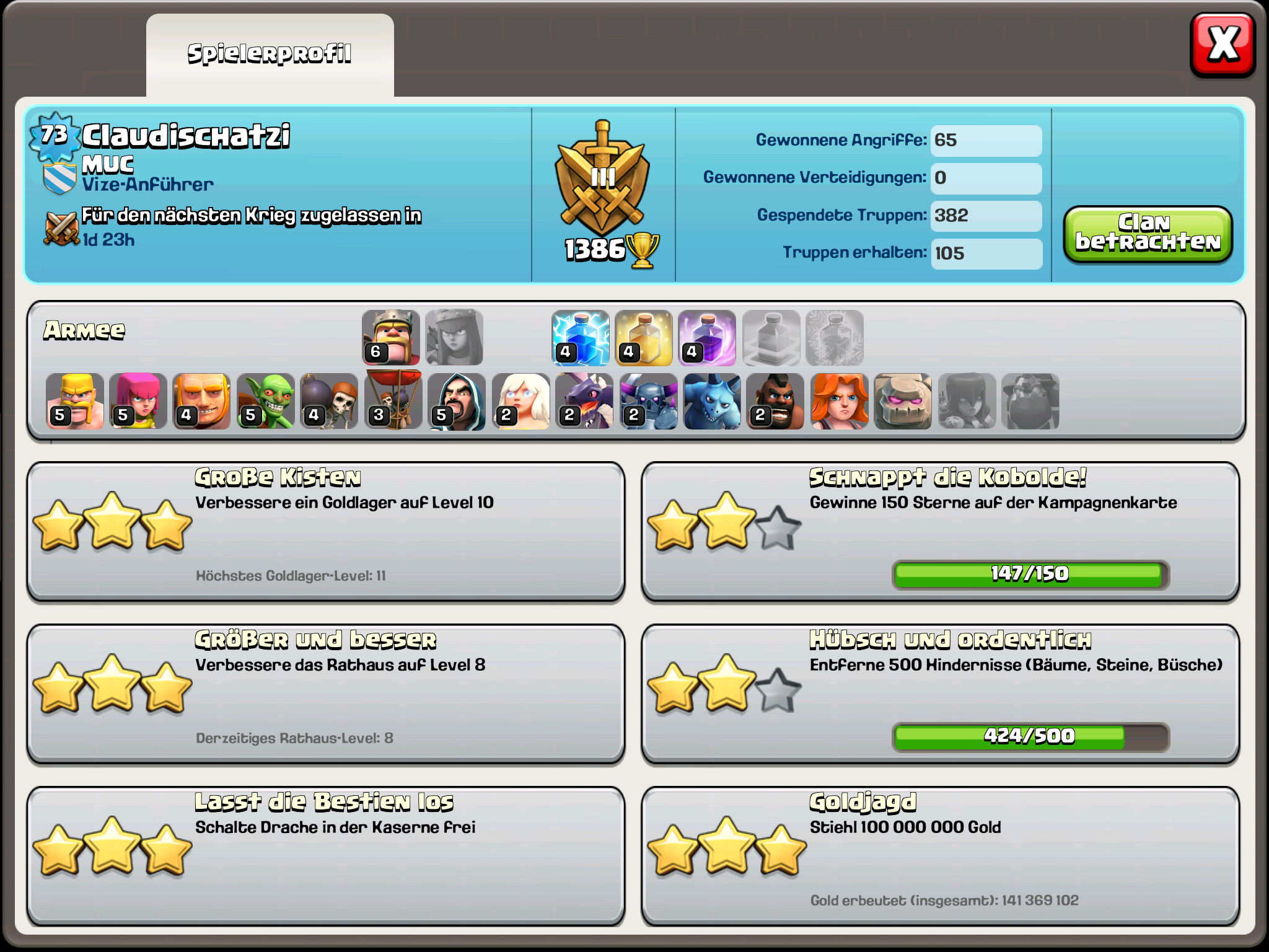 Claudischatzi - Kriegsberatung claudischatzi 9. Januar 2015 Hallo liebe Clasher,vlt. habt ihr ein paar gute Tipps für mich, um mein Spiegelbild zu besiegen. Clanburg: 25 PlätzeArmeelager: 200 PlätzeDer Krieg startet Samstag 9:30 Uhr.Lieben Dank schon mal im vorausClaudischatziAuf dem Screenshot sind die Bodis und Barbaren nicht zu erkennen.... Bogis Level 5, Barbaren Level 5