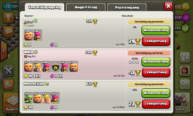 Ich habe in meiner ganzen zeit 2 Accounts gehabt aber immer mit pause wo ich auch diese Accounts immer abgegeben habe meine spielzeit in Clash beträgt bestimmt auf ganze gesehen 2,5 Jahre. Meine Dörfer waren nie gerusht und immer bis Th9 hoch gezogen somit kann ich auch Taktiken wie Mass-Schweine , Gowipe , GoHog, & Golaloon.