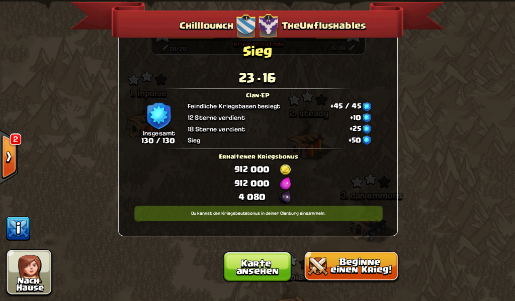 so unser erster CW Sieg mit den EP, uns wurde alles gutgeschrieben