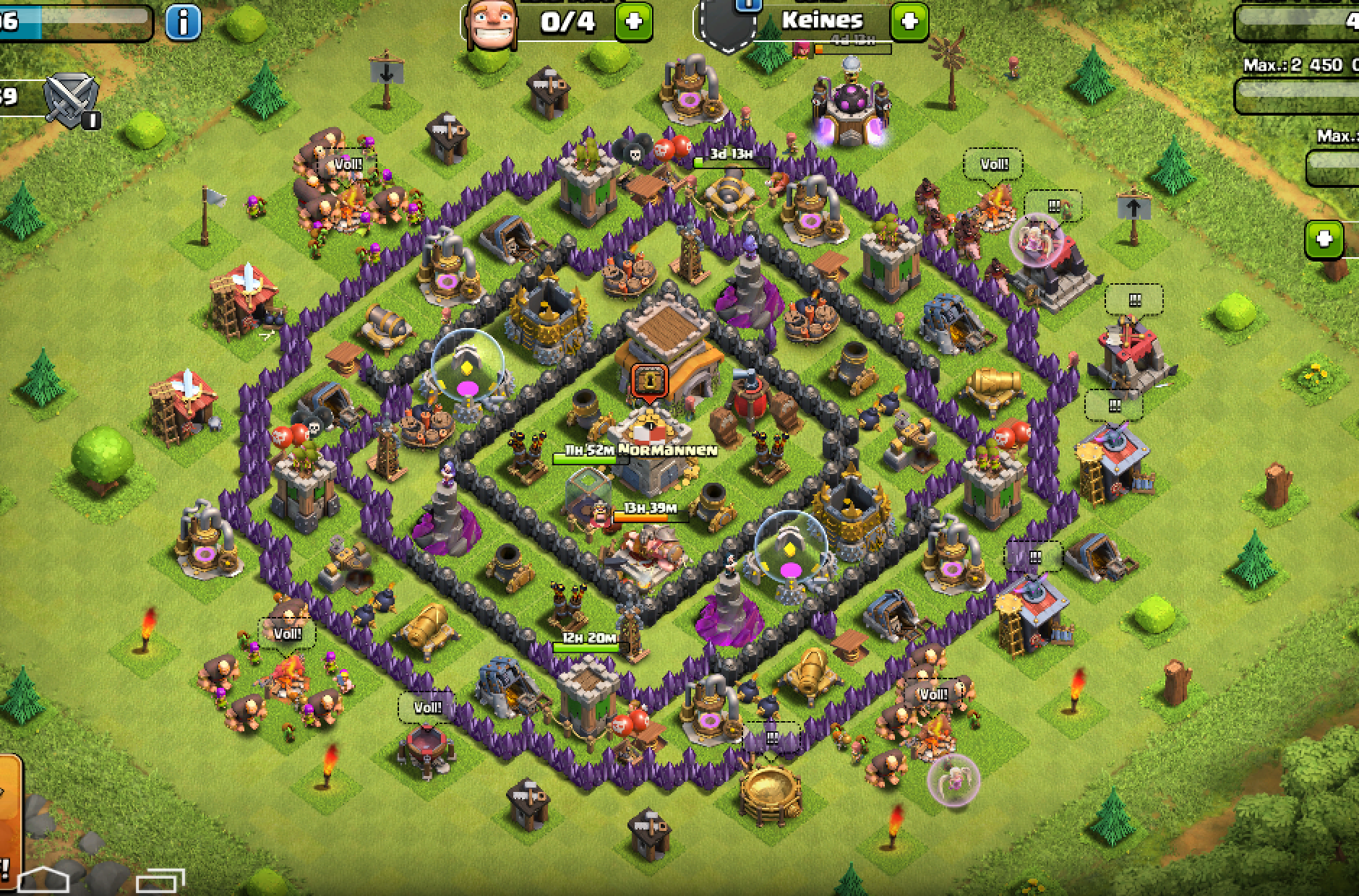 Habe schon einige Angriffe sehr gut überstanden die Riesen laufen sich meist TOT wenn sie durch die Gänge laufen.Die Clanburg steht genau jetzt in der Mitte.