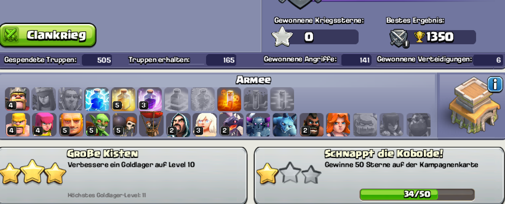 Forschungen habe ich jetzt noch als 3 Bild dazu gefügt.( Die Bogis laufen gerade auf 5 ) und der König wird heute auf Level 5 fertig.