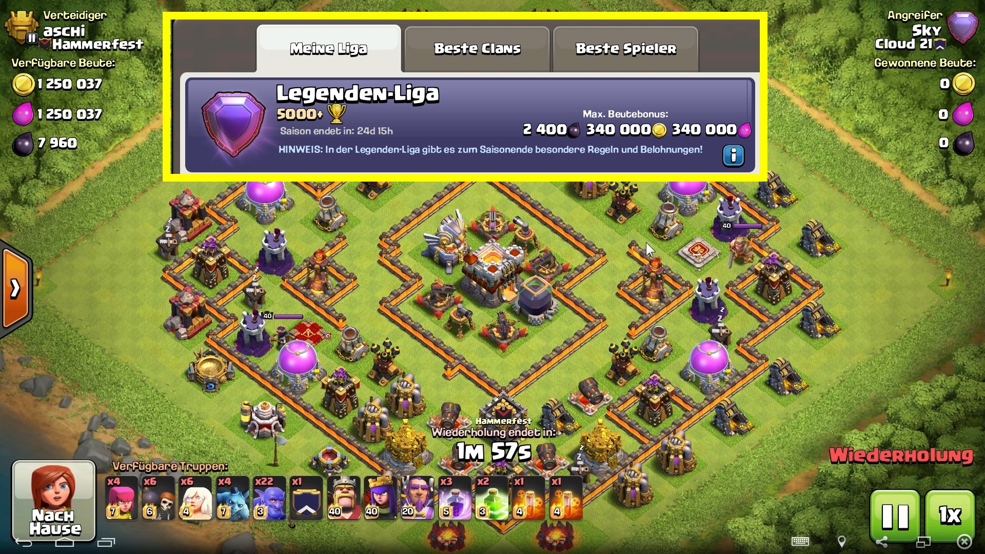 Ab der Minute 5:45 mit dem Bonus aus der legende sind das 3,1 Millionen Loot. OK gefunden ? Hier ein Screenshot dazu: Quelle: http://www.youtube.com/skylivecoc
