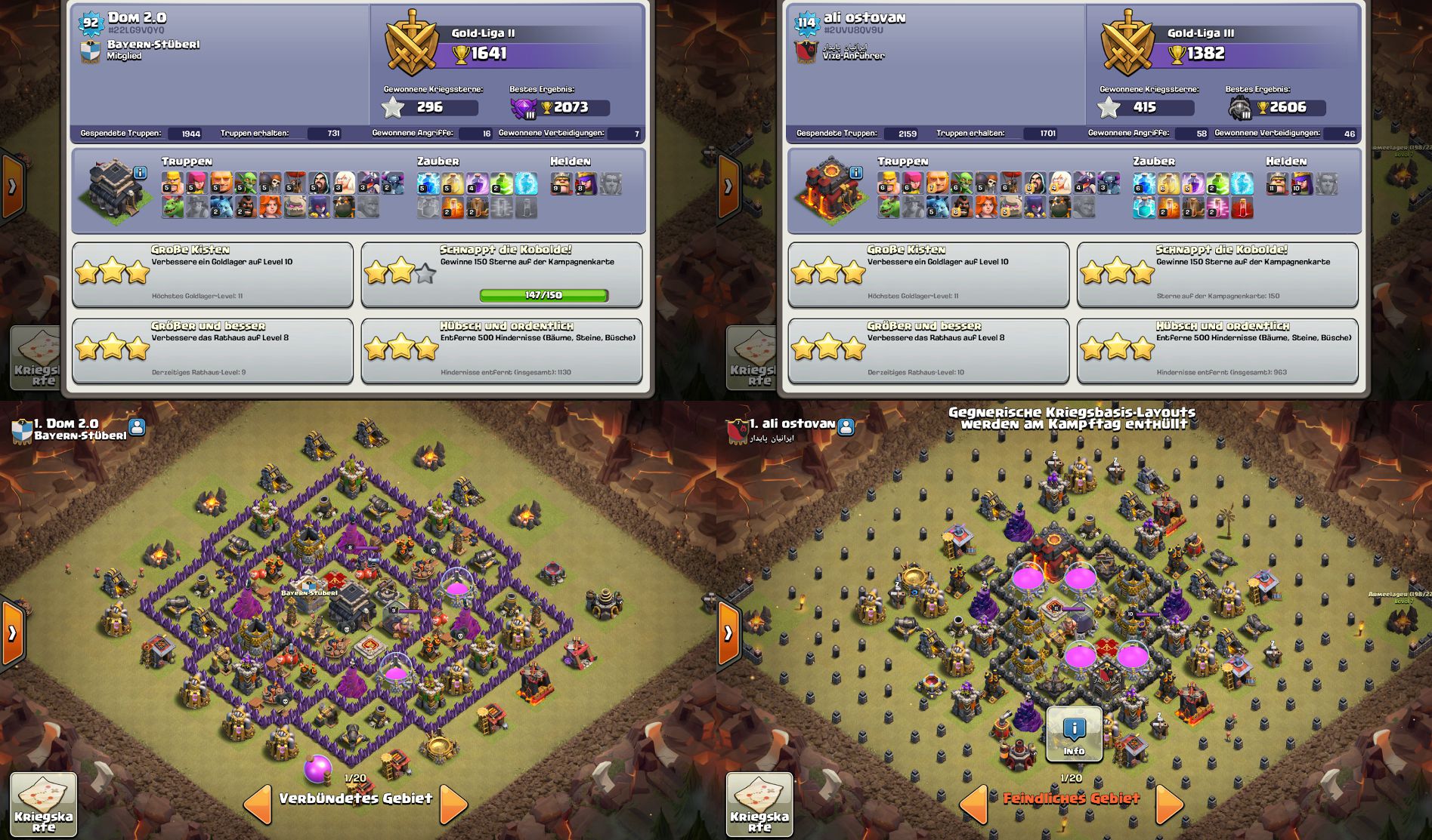 Ja die Gewichtung liegt mehr auf CW, dann werde ich mich jetzt mal um die Mauern und meine Helden kümmern und die verbleibenden Truppen forschen.