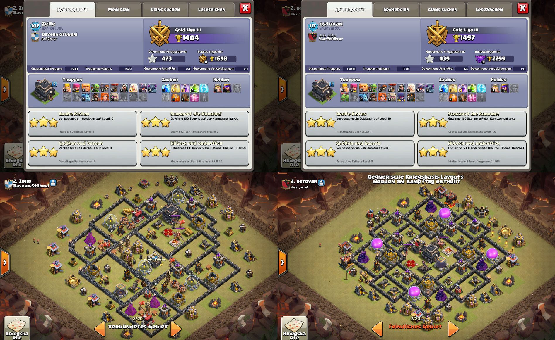 Da sich unsere RH8 im Clankrieg immer sehr schwer tut bei anderen RH8 3 Sterne zu holen kam mir die Idee ob es nicht möglich wäre ein RH9 Dorf zu bauen das noch als RH8 durchgeht.