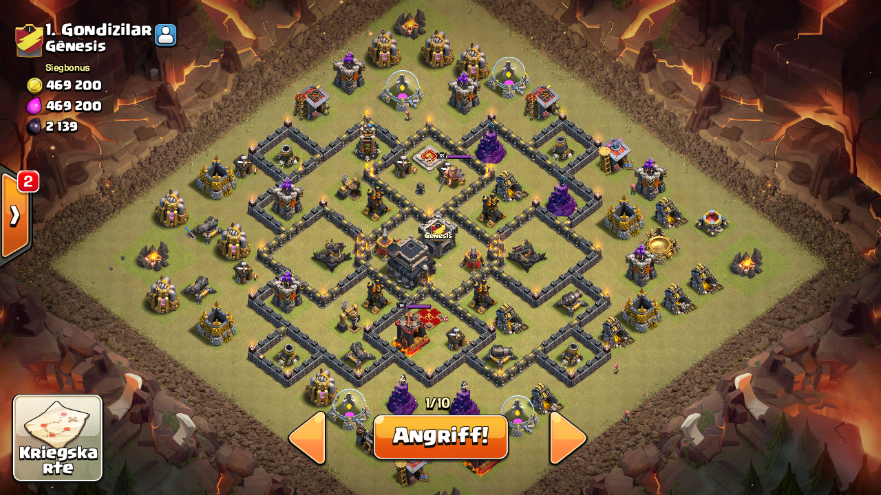 Zum schluss habe ich 93% und 2☆ erreicht. Es standen noch paar gebäude dort wo die 2 hexen ohne heiler waren. Denke ohne den Fehler hätte ich an den 100% gekrazt. So hatts leider nicht gereicht. Wenn man aber bedenkt dass er einiges stärker ist als ich denk ich wars n guter angriff. Danke euch für die Tipps.