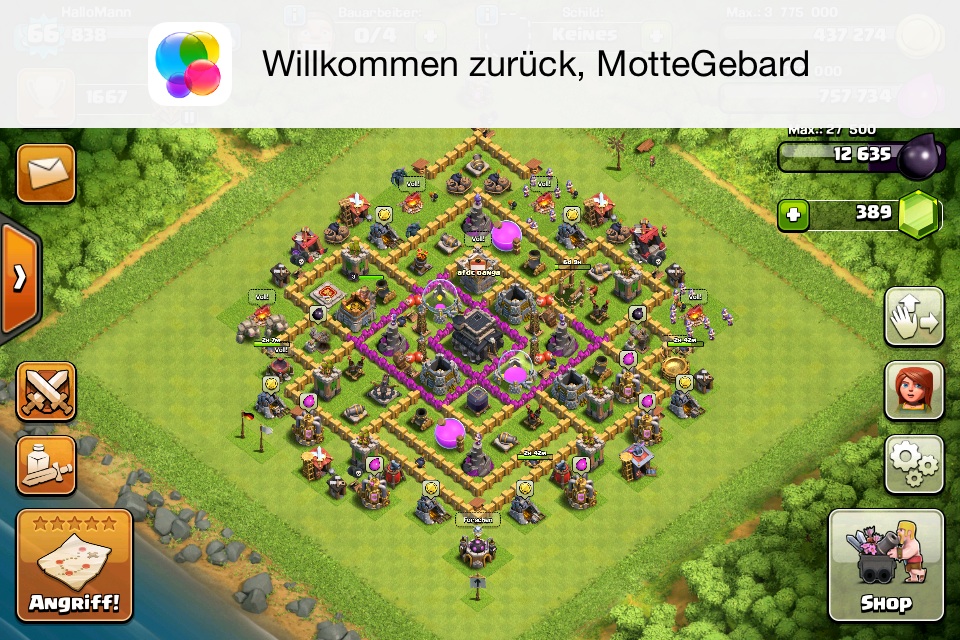 ]Hallo Leute könnt ihr mir ein Dorf bauen und ein Bild schicken. Weil ich mache immer so schlechte Dörfer.bin RH 9 mir fehlt 1 X-Bogen und die Königin .:)